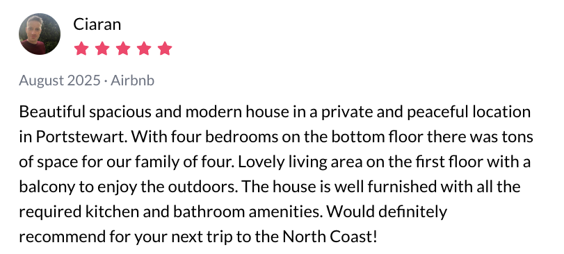 From cozy seaside cottages in Portstewart to large family homes near the Giant’s Causeway, our curated selection of self-catering accommodation offers everything you need for an unforgettable stay. Whether you're visiting for The Open in Portrush or a peaceful weekend escape, we’ve got the perfect place for you.